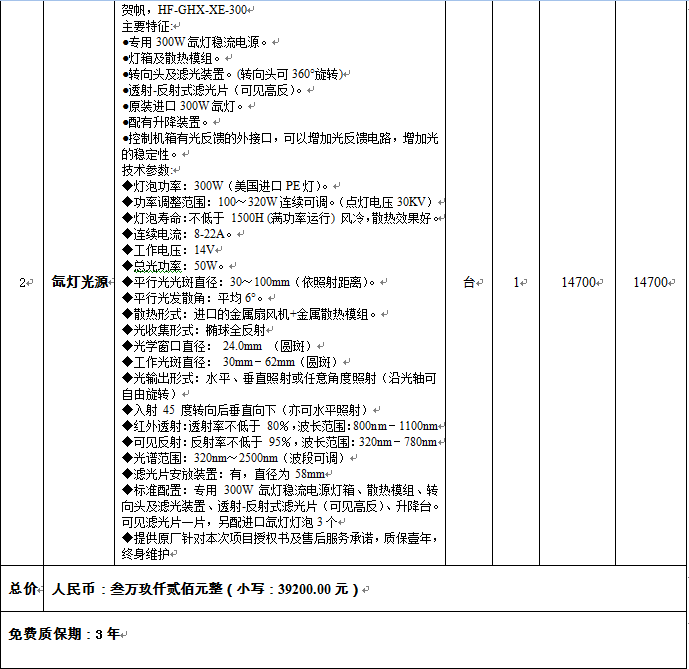 主要成交标的的名称、规格型号、数量、单价、服务要求: