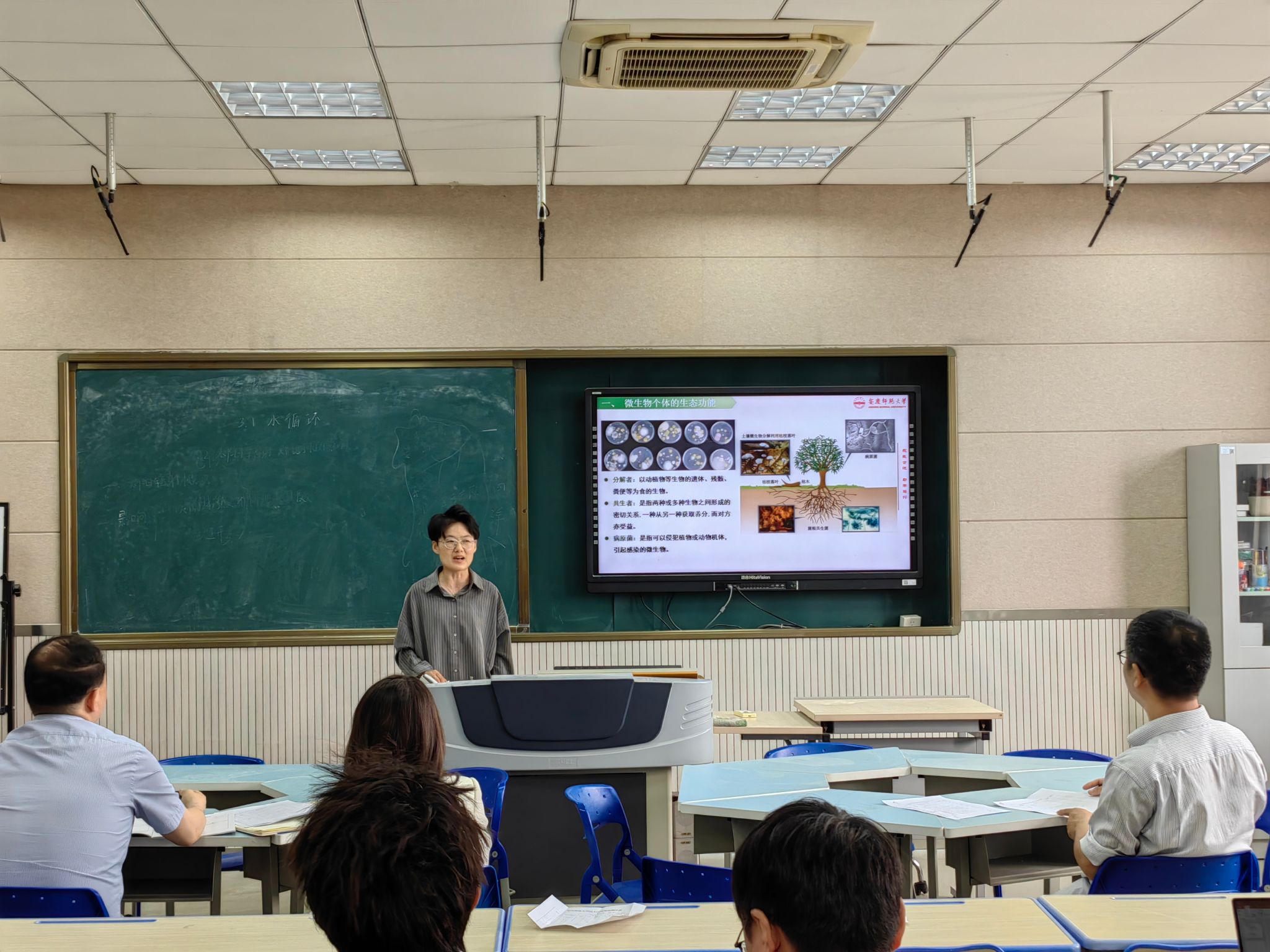 环境工程教研室7名教师同台竞技,围绕环境工程专业核心课程,从教学内容设计、课堂教学模拟、课程思政融入和实践案例分析等环节,全面展示各自的教学设计能力、课堂组织能力、信息化技术应用水平以及学科前沿融入教学的创新能力。结合“大气污染机制”“微生物处理技术”“环境装备设计”等热点研究领域,呈现了多节兼具科学性、实践性与创新性的精彩课堂。