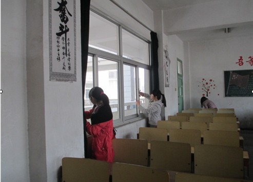 志愿者们一来到班级,就拿着扫帚、拖把纷纷忙碌起来。他们扫地、拖地、擦黑板、倒垃圾,将玻璃都擦得干干净净。他们不怕脏,不怕累,扫完一个又一个教室。原本脏乱不堪的教室被他们打扫得焕然一新,相信下午来上课的同学肯定身心愉悦。“打扫不是一件轻松的事,又辛苦又没有报酬,为什么还自愿过来呢?”志愿者笑着回答:“我只希望用自己的行动使大家有一个好的学习环境,不为别的。”