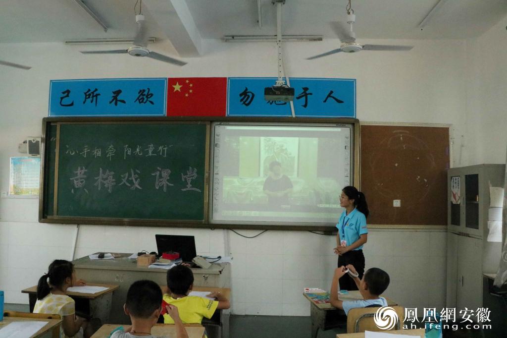 在黄梅戏课堂上,实践团成员通过江老师的一段视频激励孩子们努力学习黄梅戏,传承家乡的特色文化。江老师透过镜头告诉孩子们:“黄梅戏是我们安庆的地方戏。未来,黄梅戏的希望寄托在你们身上,希望你们能好好学习,让黄梅戏文化艺术发扬光大。”(通讯员 黄耀)