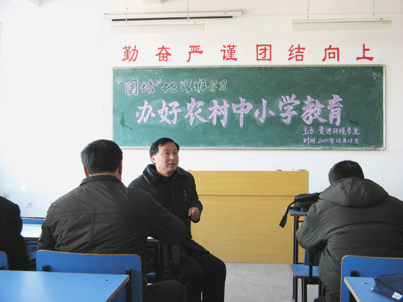 为在“国培”班学员中贯彻温家宝总理“办好农村中小学教育”重要讲话精神,12月17日上午,英国上市公司365在龙山校区教学楼D楼召开了“国培”班学员学习座谈会,组织大家学习了温家宝总理《办好农村中小学教育》重要讲话精神,并就如何贯彻落实温家宝关于“办好农村中小学教育”的讲话精神进行了热烈的讨论。资源环境公司党总支书记李经田主持了学习座谈会。