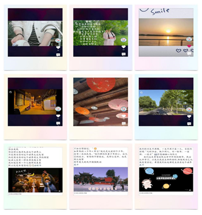 活动一开始,旅游管理专业石鑫同学就上传了自己的vlog同大家共享自己有趣的生活状态,在他拍摄的每一个镜头里都能展示他日常生活中美好而又真实的一面。活动期间的每一天都有温馨、精彩的短视频在志愿者服务团的账号上发布,每一条视频都充满了人间的烟火味,每一个画面都成为创作者弥足珍贵的记忆。“我们不只是在尝试剪辑视频的新技能,更多的是记录生活、分享美好。”志愿者张杰这样说到。