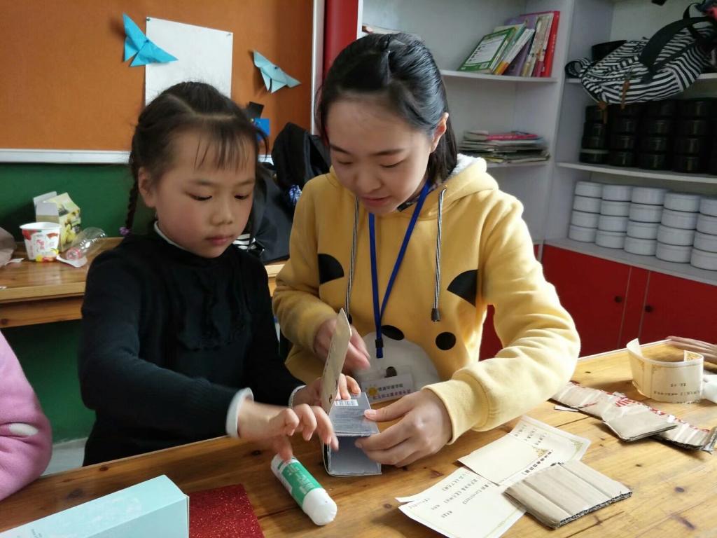 “春风又绿江南岸”,春天来了,万物复苏,也是植树的最佳时机,于是志愿者为孩子们讲述植树节的起源并吟诵许多关于植树的诗。其中有“柳痴”之称的柳宗元曾带领百姓参加植树活动,遂留下了“柳州柳刺史,种柳柳江边”。还有以种树为乐的白居易曾“持钱买花树,城东坡上栽”,当然还有诗圣杜甫、诗仙李白都爱植树,也留下许多诗句。这些都表达了古人对于树木的喜爱,对自然的崇敬。为了增强孩子们的环保意识,志愿者将带来的废品交给孩子们,让他们进行废品改造,孩子们纷纷发挥创意,将旧纸盒和塑料瓶制作成笔筒和花盆,将落叶制作成精美的书签。活动结束前,志愿者分发花种,孩子们满怀希望地将种子播下,期待种子的生根、发芽、开花、结果。希望它们像这些活泼可爱的孩子们一样健康成长!