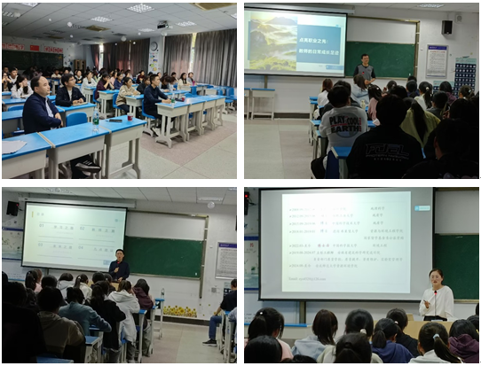 随后,陈金勇老师以“教师的日常”为题,将中学地理教师的日常与同学们进行了分享,特别是职称晋升要求,并鼓励同学们有机会要提高自身学历,以便在未来工作岗位上更有竞争力。