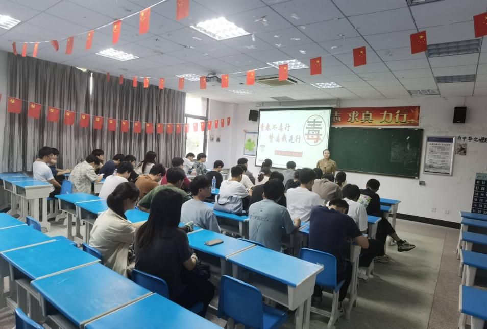 6月19日,2021级环境工程2班在F204召开国际禁毒日主题教育暨期末考试诚信教育主题班会,会议由辅导员汪翘楚主持,班级41名同学参会。