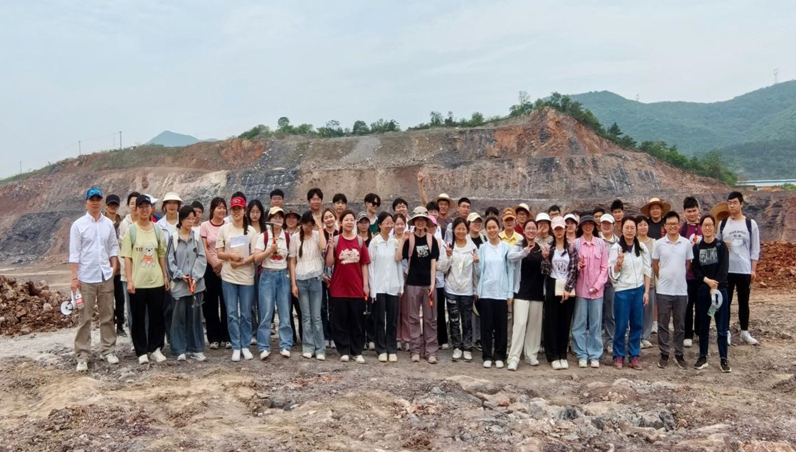实习期间,在指导老师的带领下,同学们分别考察了巢湖北山地区的地质构造,辨别了多种岩石及矿物,认识断层的形成机制,了解喀斯特地貌的类型及其成因,并且收集了化石标本。