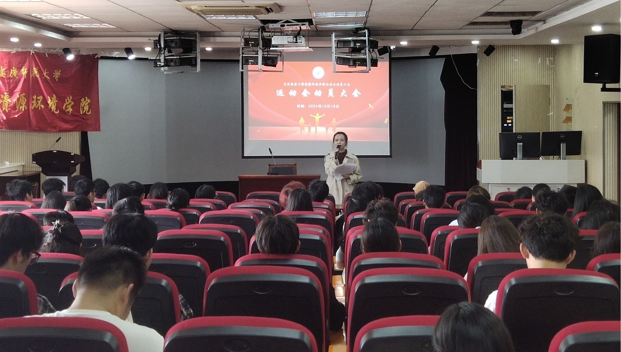汪翘楚表示运动会不仅是一场体育竞技的盛宴,更是展现资环学子昂扬向上的精神面貌和团队凝聚力的重要舞台。她希望所有运动员在比赛中发扬团结协作的精神,赛出风格、赛出水平,共同谱写校运会上的精彩篇章。同时她特别强调了比赛训练中存在的安全问题。