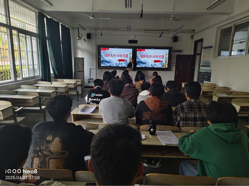 为了深切缅怀革命先烈,传承红色基因,弘扬爱国主义精神,2025年4月7日上午,2023级环境工程2班全体同学开展了一次“缅怀先烈,致敬英雄”主题团日活动。全班39名员工通过ppt沉浸式宣讲+互动学习,在追思中感悟初心使命,在传承中汲取奋进力量。