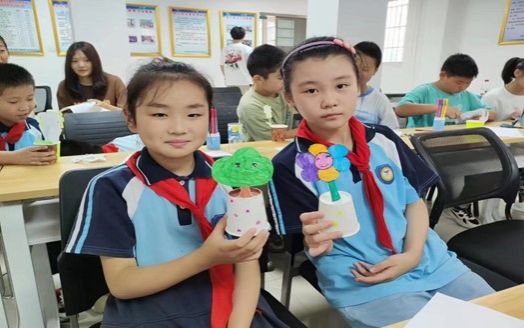 为使同学们更好地了解地理,亲近自然,志愿者组织同学们想象并制作纸杯里的植物。制作过程中,同学们手持画笔,发挥想象,在纸杯和画纸上绘出自己喜欢的植物。严一凡小朋友向志愿者分享到:“地理的世界真的太辽阔了,有一天我也想去看看图片上的山河湖海,领略大自然的魅力与壮观。